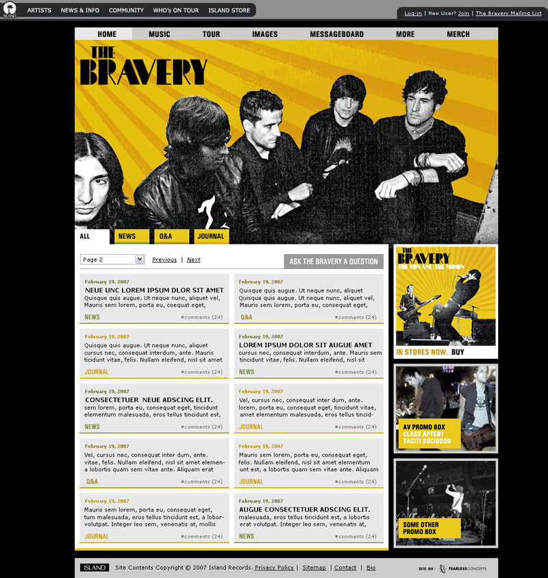 Client: Island Records Type: Band Web Site [working w/ Fearless Concepts] Role: Top level design and some production.