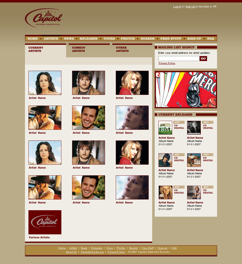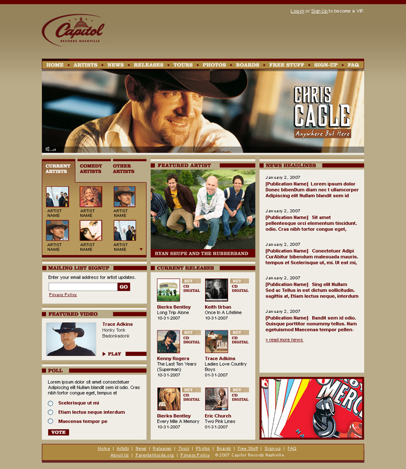 The complete redesign of the Capital Records Nashville label web site specialized in country music.