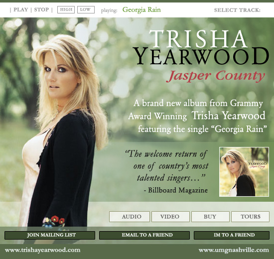 Female country superstar Trisha Yearwood has a new hugely popular album out: "Jasper County".