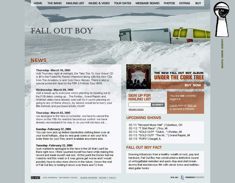 Client: Island Records Type: Band web site [working w/ Fearless Concepts] Role: Design and some production: Flash, XML