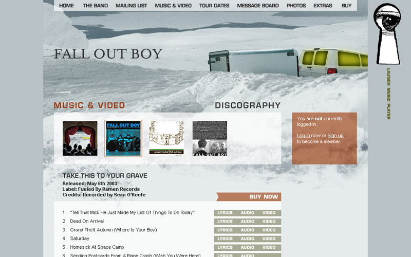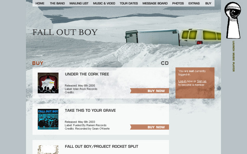 Fall Out Boy broke into the mainstream with their 2005 emo/pop-punk effort "From Under the Cork Tree". The site expands on the winter scene from the CD cover.