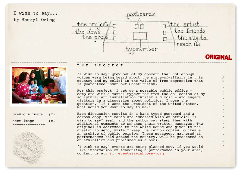 Client: Sheryl Oring Type: Art Project Role: Design and production: Flash, HTML