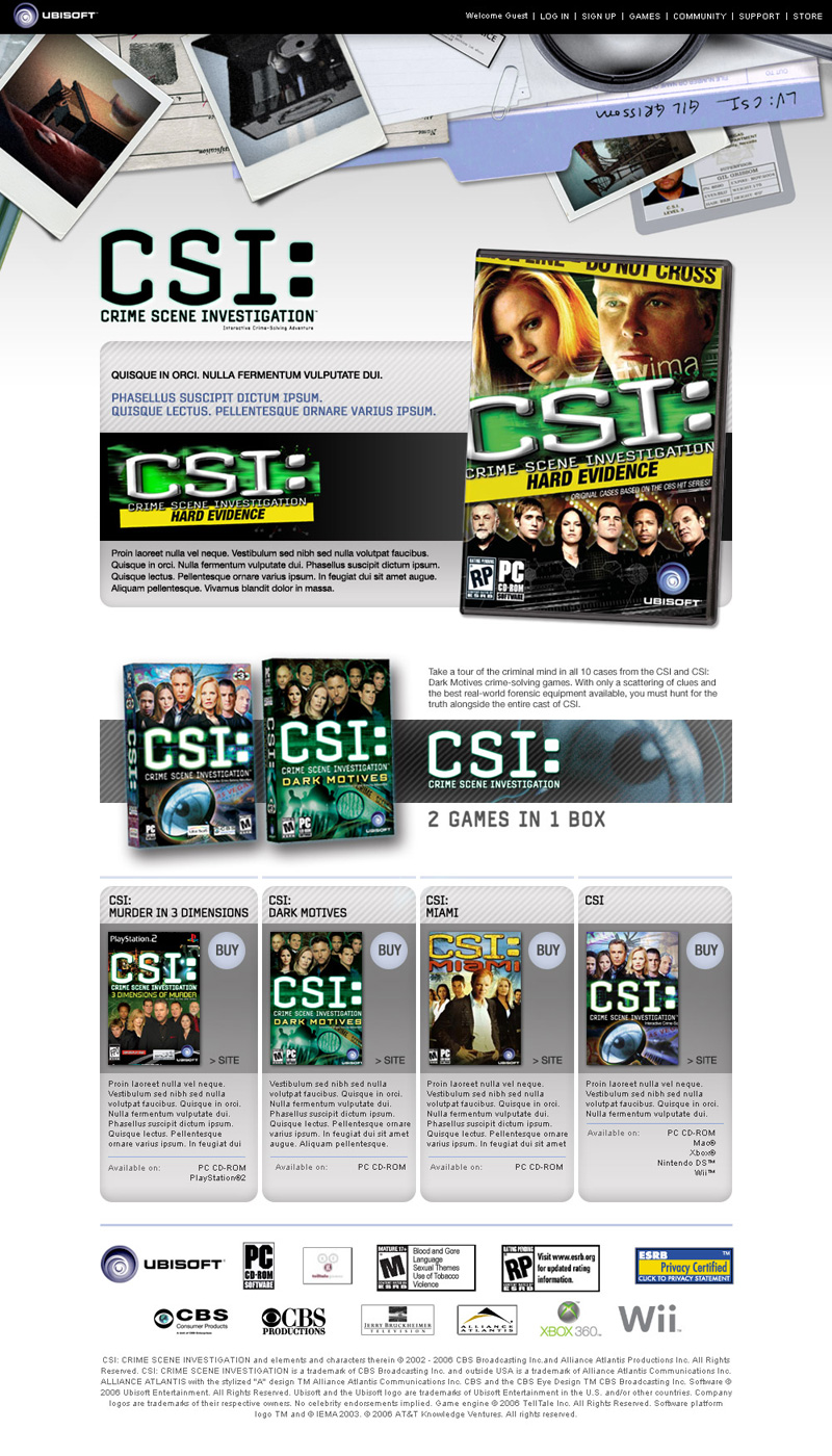 A Ubisfot web portal featuring all installments of CSI games.