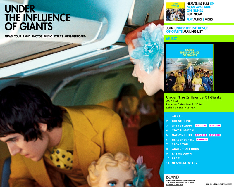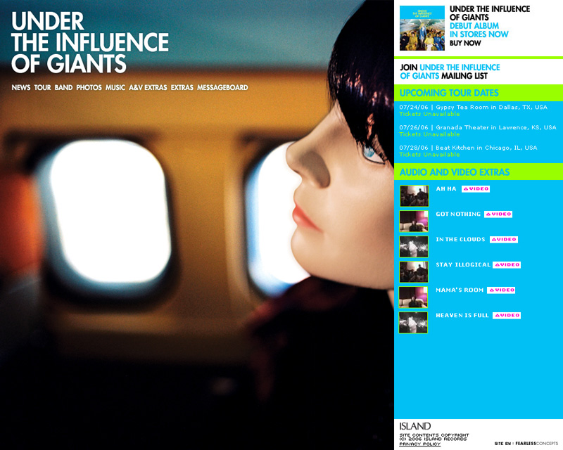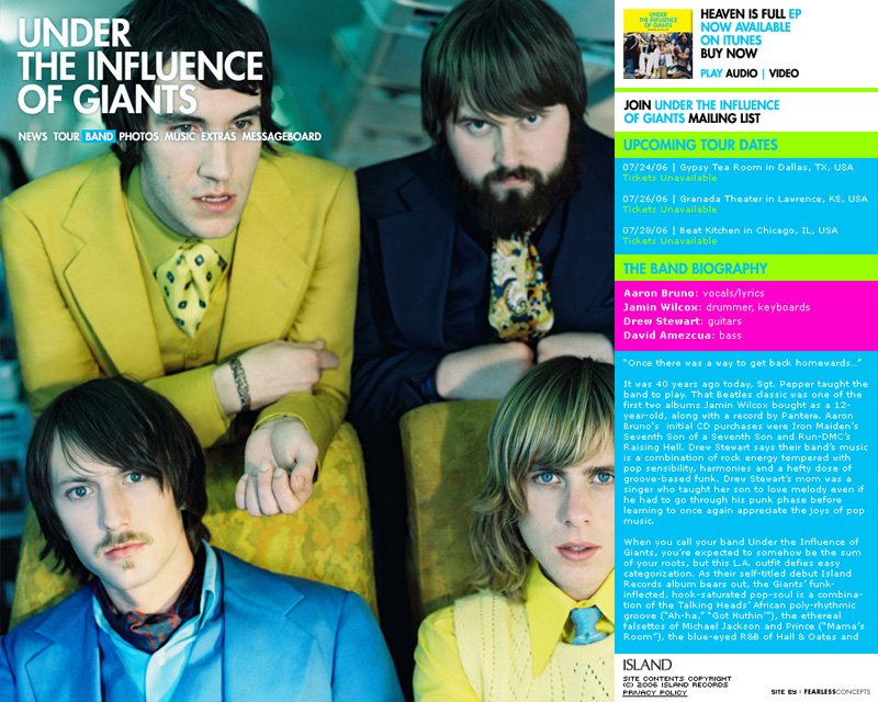 Client: Island Records Type: Band Web Site [working w/ Fearless Concepts] Role: Design and production: XHTML, CSS, PHP